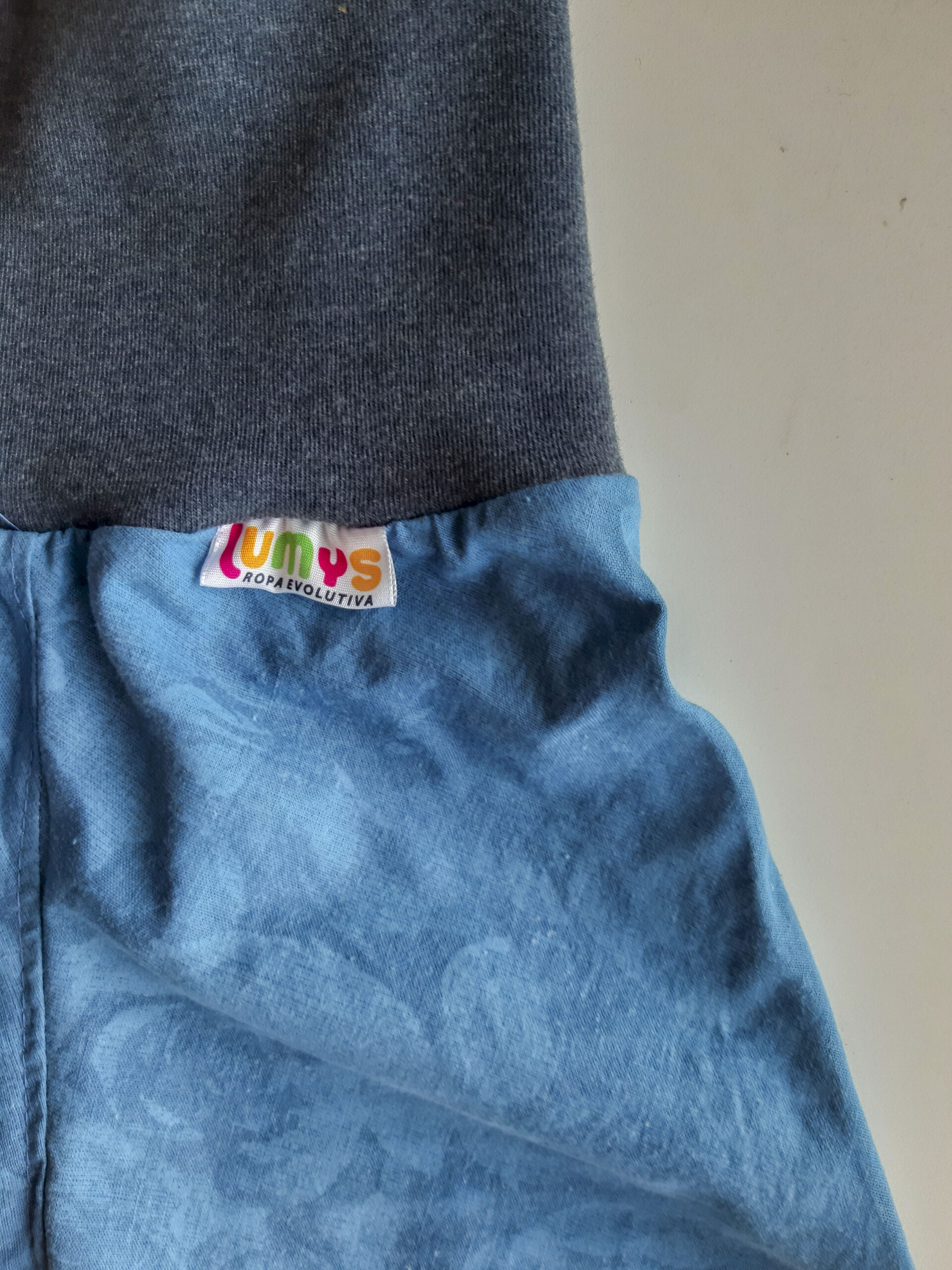 Pantalón evolutivo de diseño único hecho a partir de la re-utilización de una prenda en desuso en perfectas condiciones.