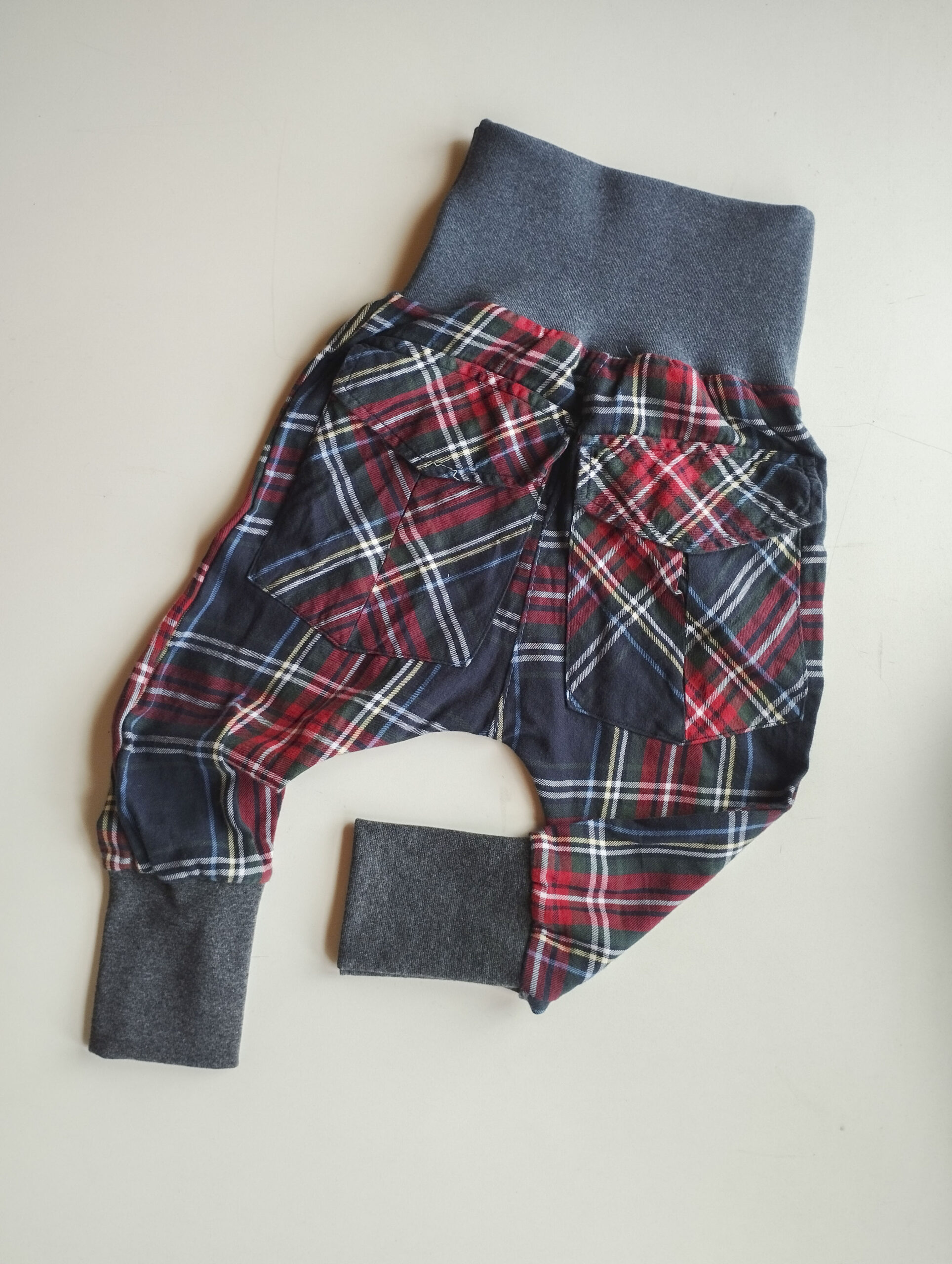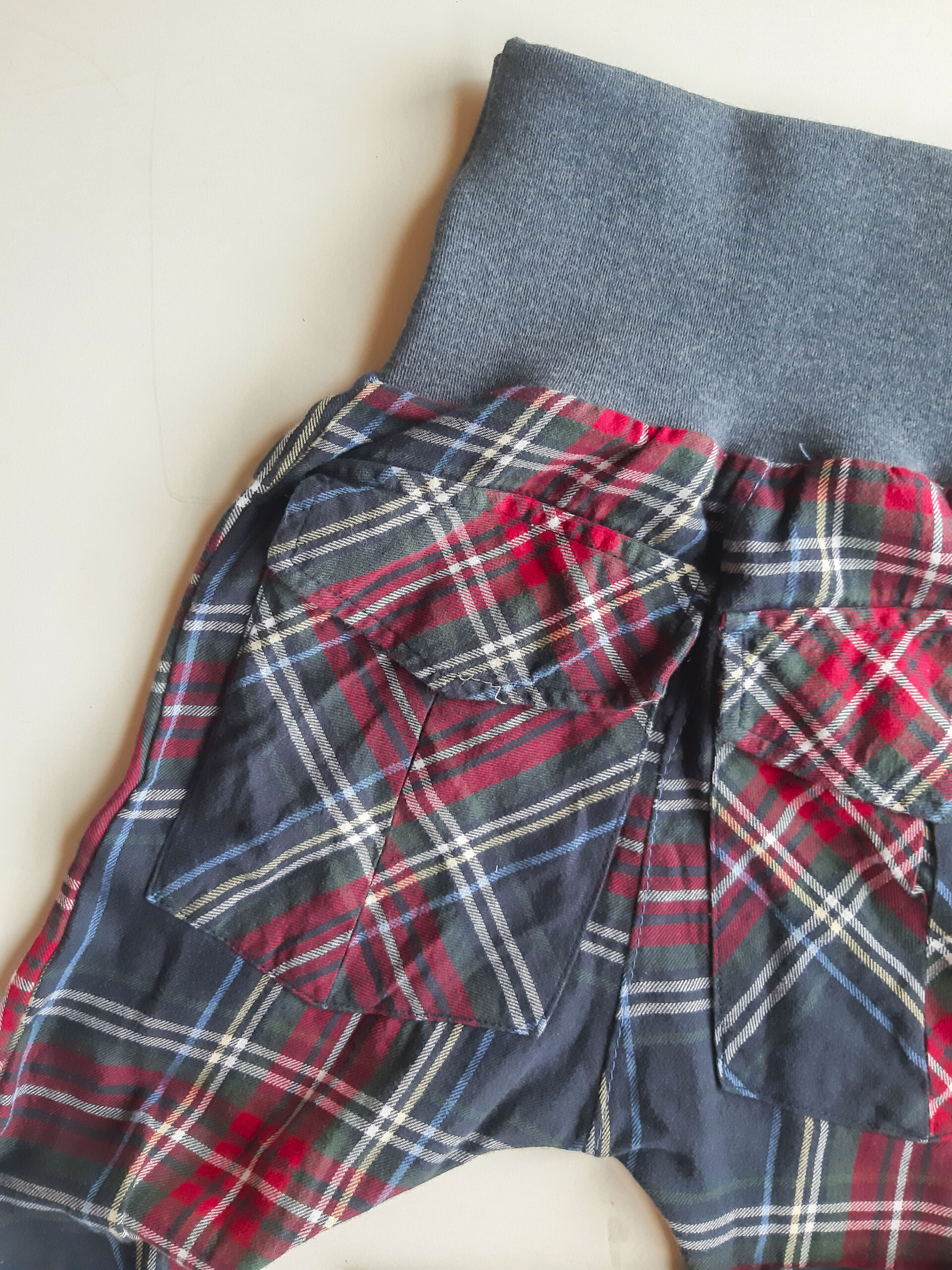 Pantalón evolutivo de diseño único hecho a partir de la re-utilización de una prenda en desuso en perfectas condiciones.