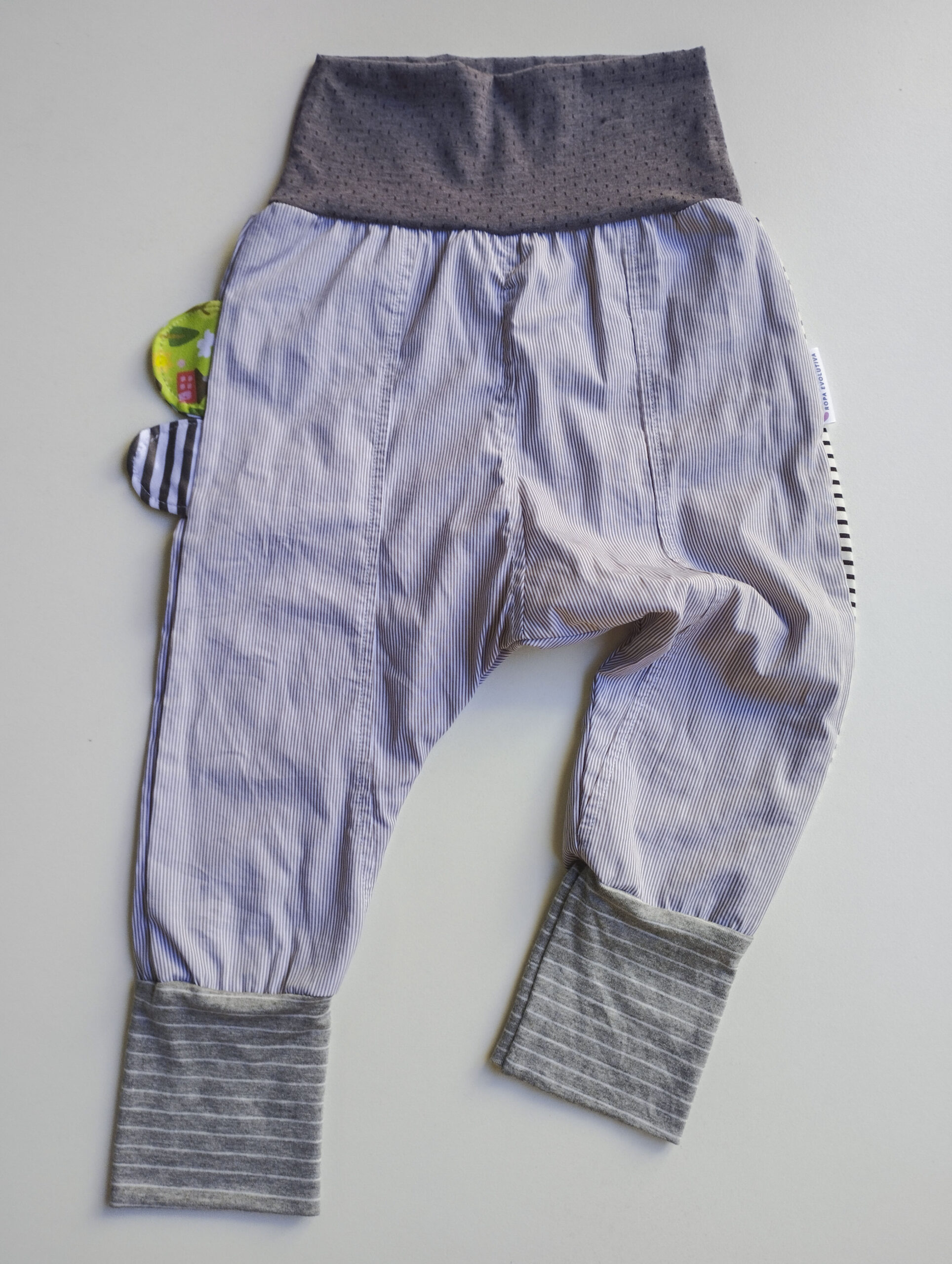 Pantalón evolutivo de diseño único hecho a partir de la re-utilización de una prenda en desuso en perfectas condiciones.