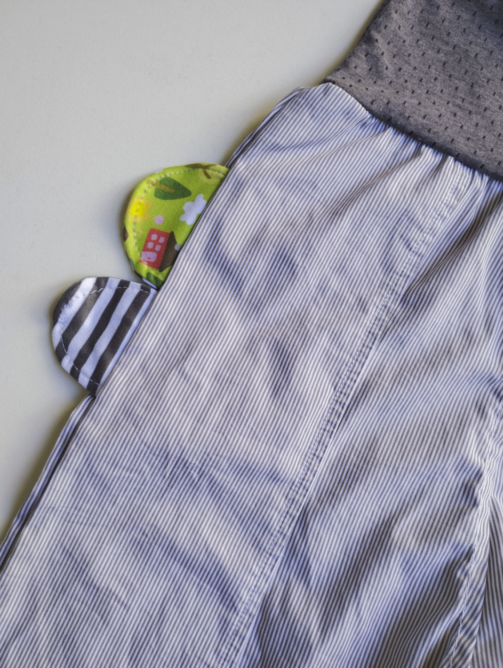 No tienen elástico, sólo puños que ajustan y no aprietan, sino todo lo contrario contienen amorosamente su pancita. Éstos mismos puños permiten que el pantalón sea evolutivo doblando y desdoblando a medida que crece tu bebé.