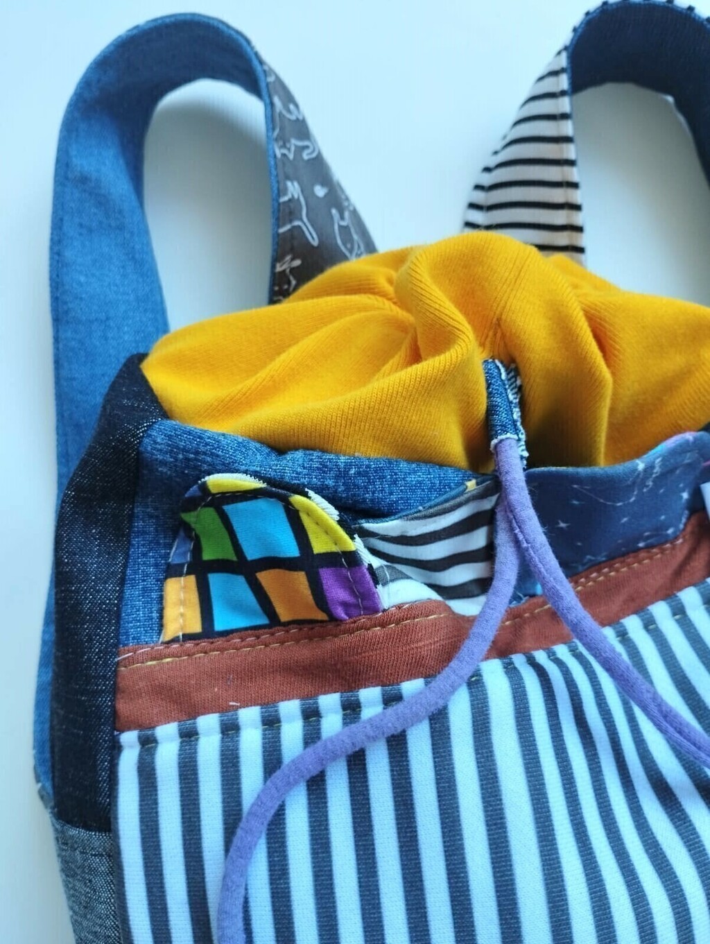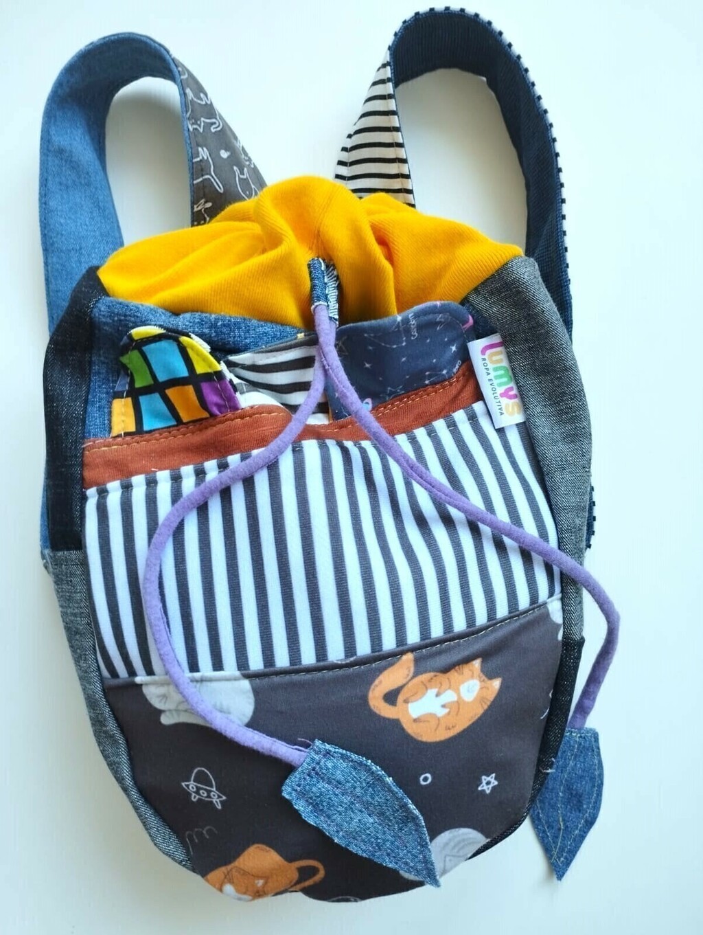 Cada mochila cuenta su propia historia, cosida con amor y con descartes textiles que tienen una segunda oportunidad desde mi taller ¡Texturas y estampas que les dan vida de manera única!