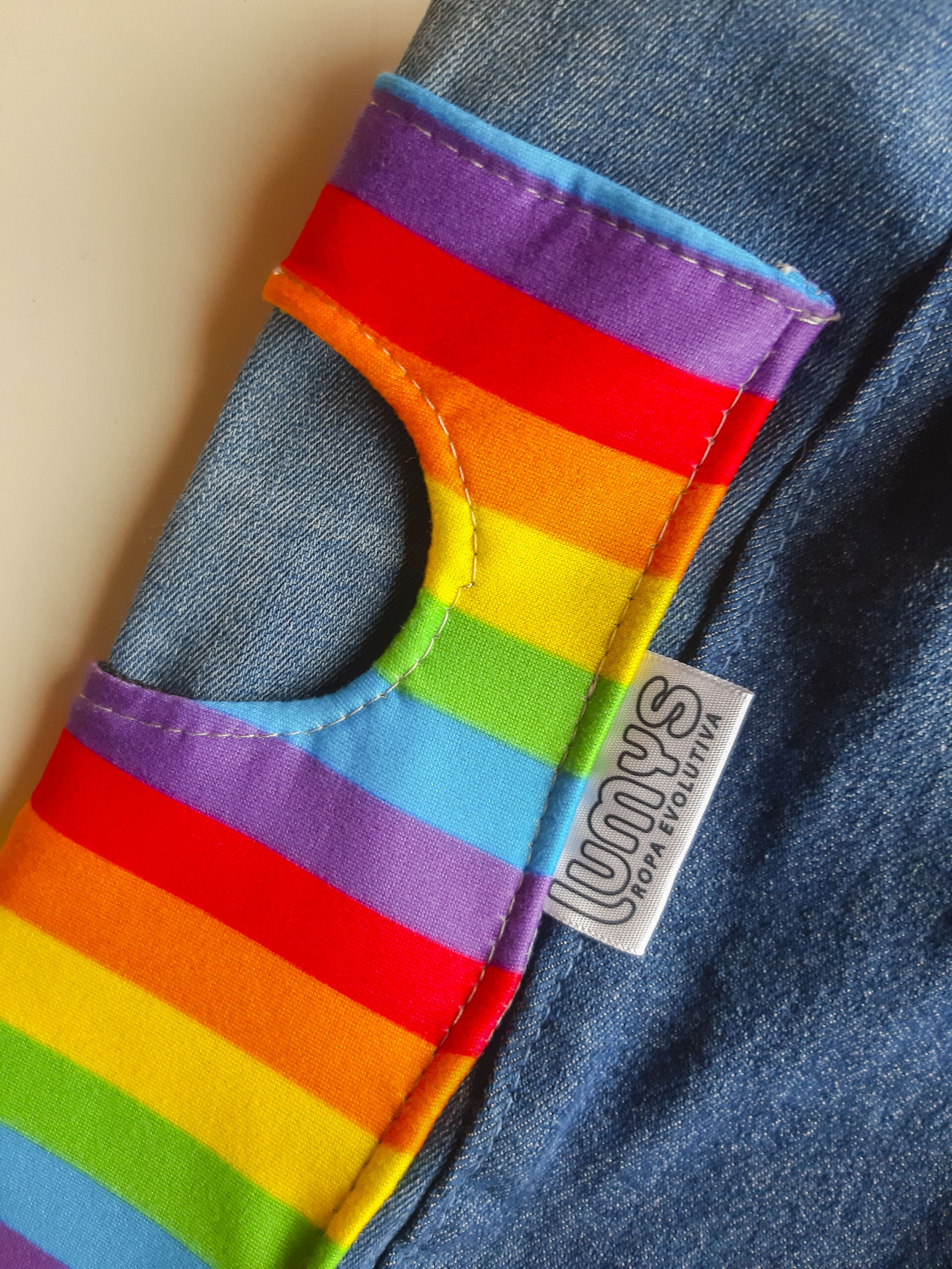 No tienen elástico, sólo puños que ajustan y no aprietan, sino todo lo contrario contienen amorosamente su pancita. Éstos mismos puños permiten que el pantalón sea evolutivo doblando y desdoblando a medida que crece tu bebé.