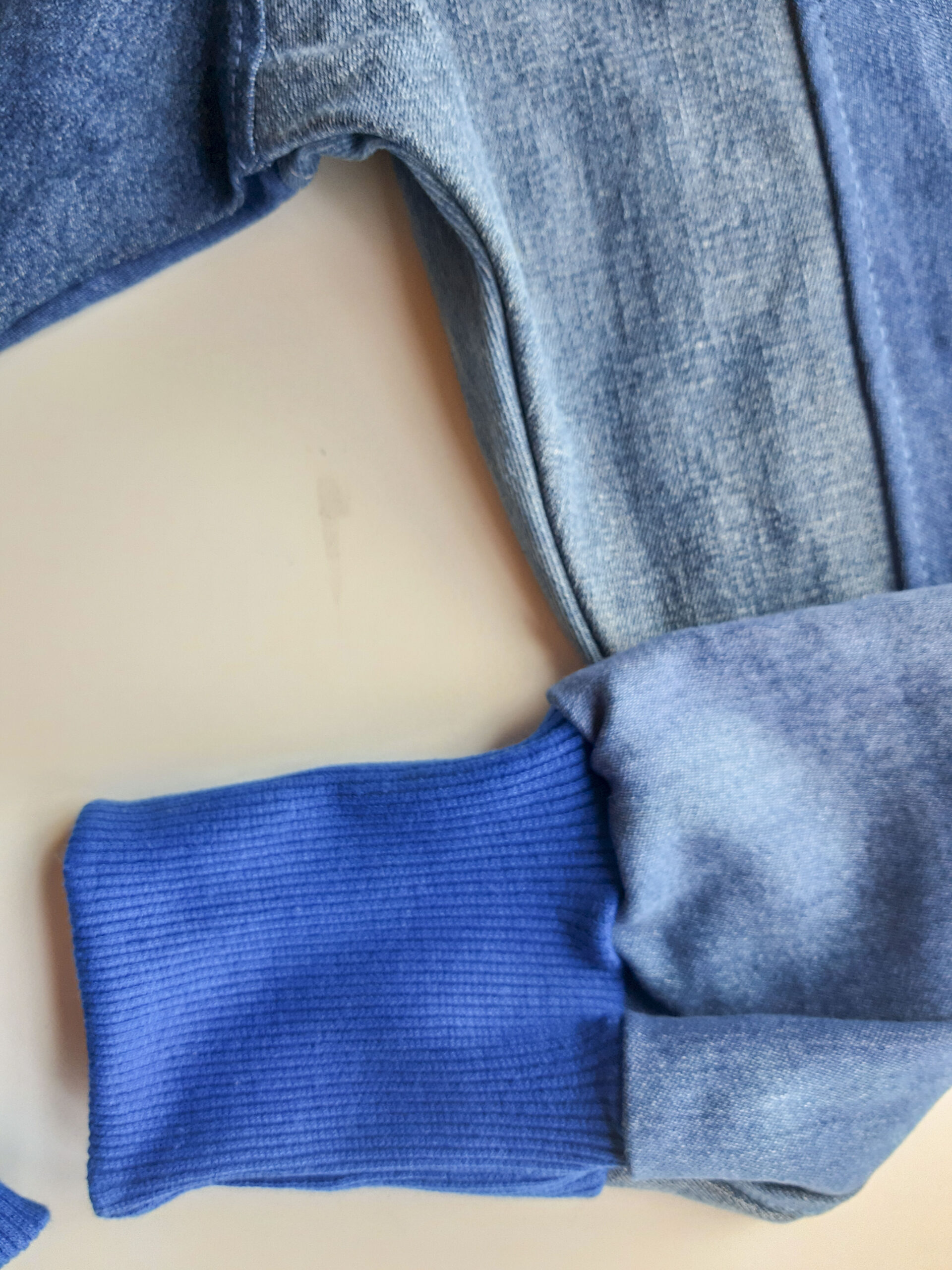 Pantalón evolutivo de diseño único hecho a partir de la re-utilización de una prenda en desuso en perfectas condiciones.