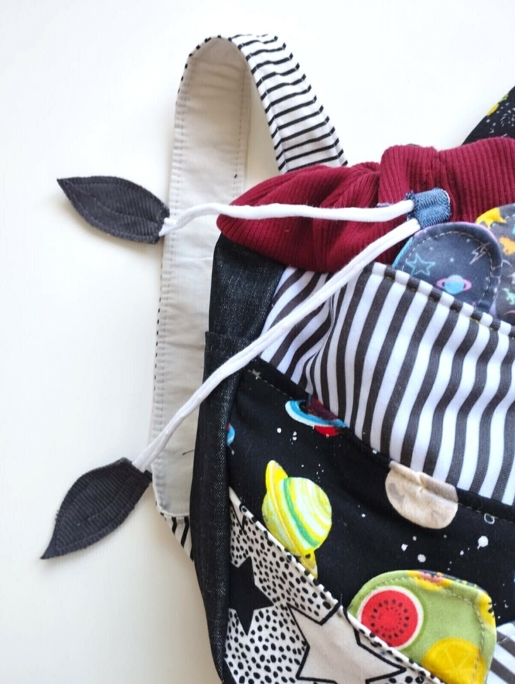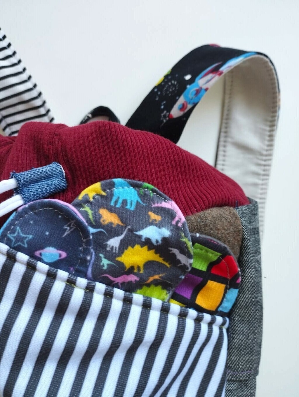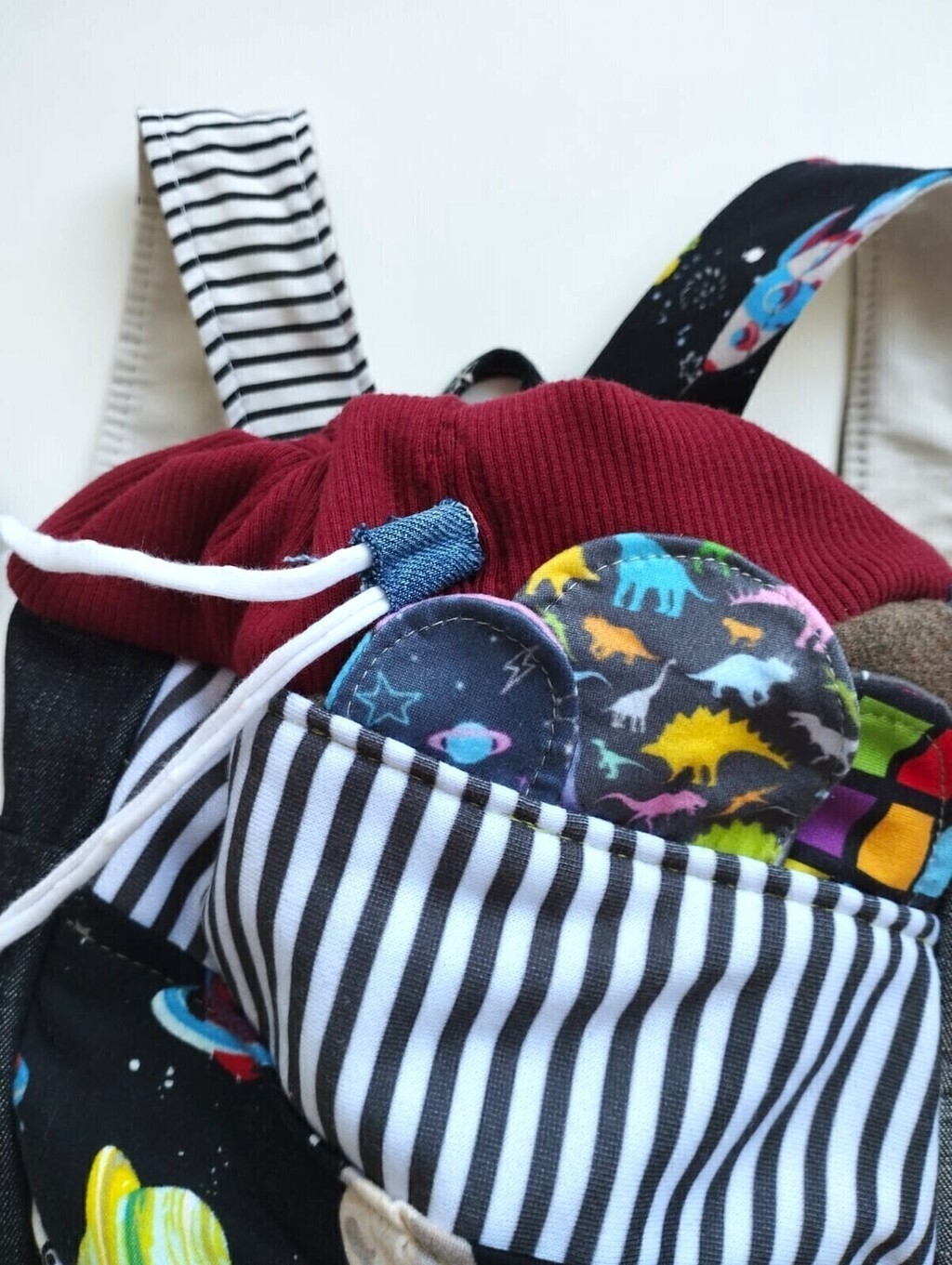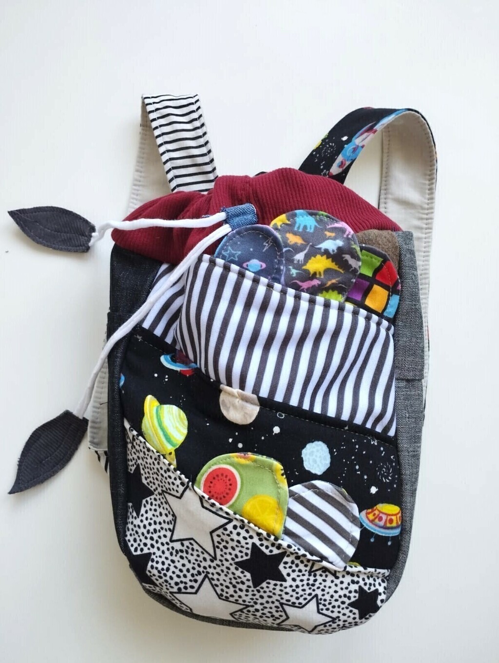 Cada mochila cuenta su propia historia, cosida con amor y con descartes textiles que tienen una segunda oportunidad desde mi taller ¡Texturas y estampas que les dan vida de manera única!