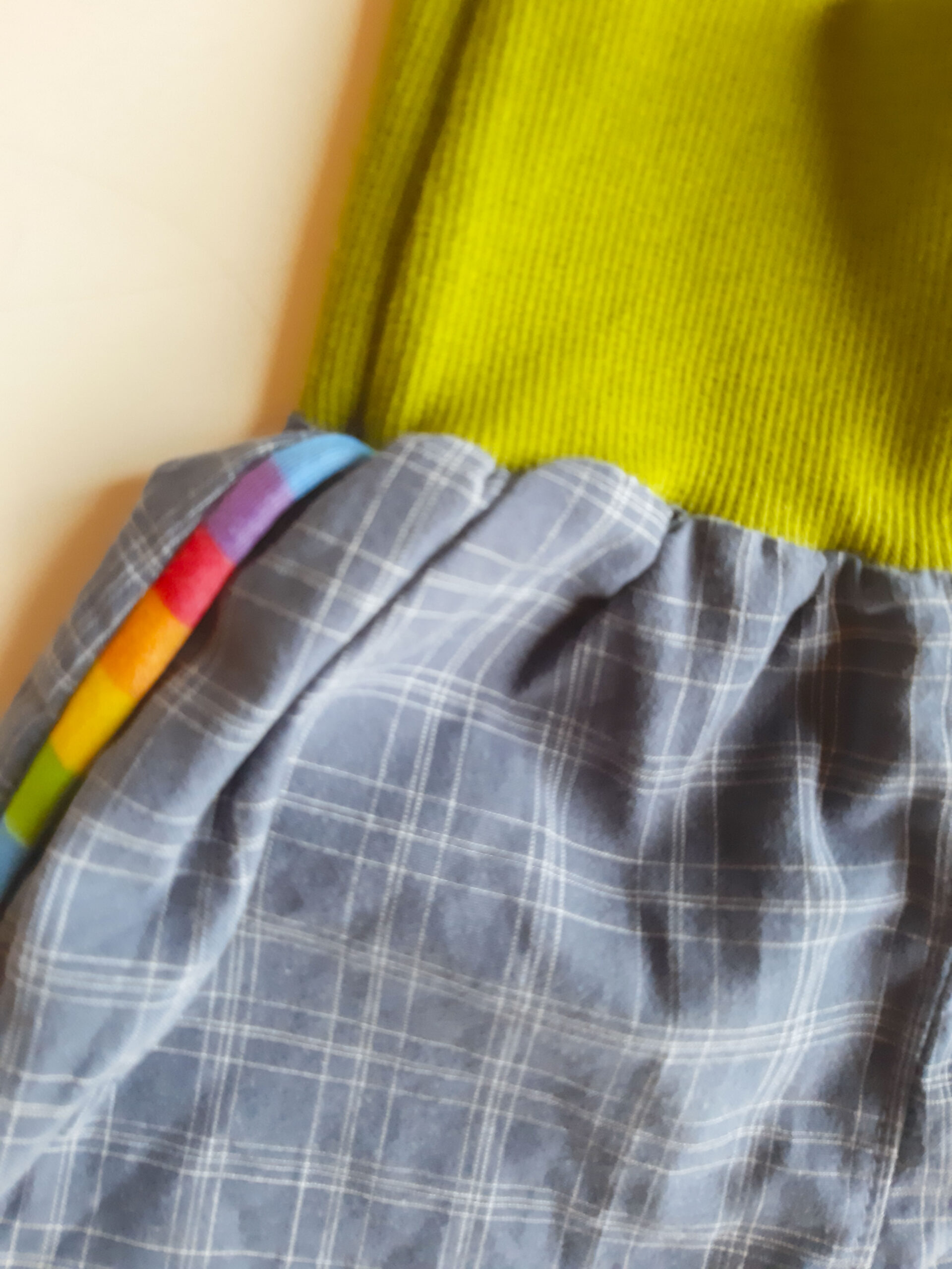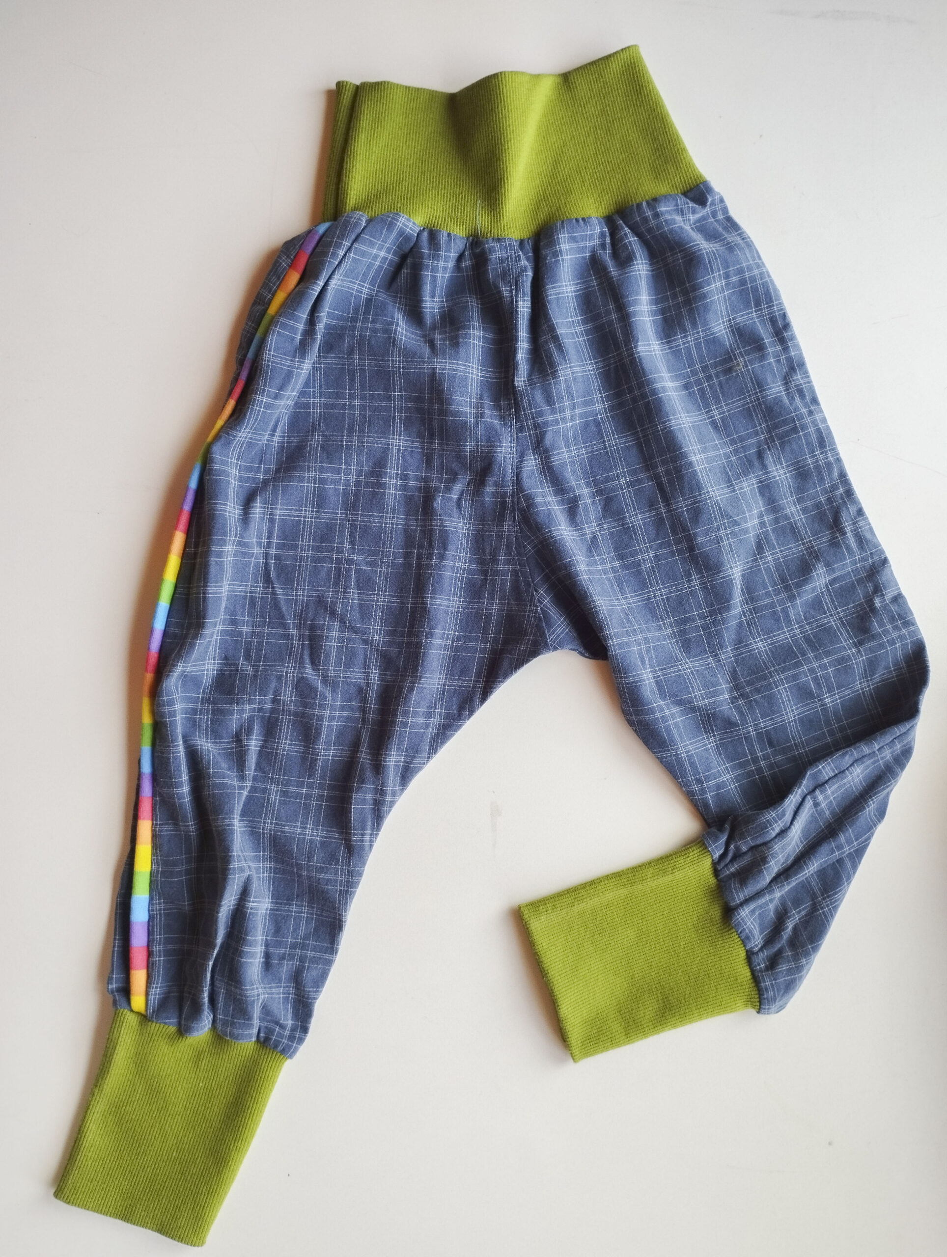 Pantalón evolutivo de diseño único hecho a partir de la re-utilización de una prenda en desuso en perfectas condiciones.