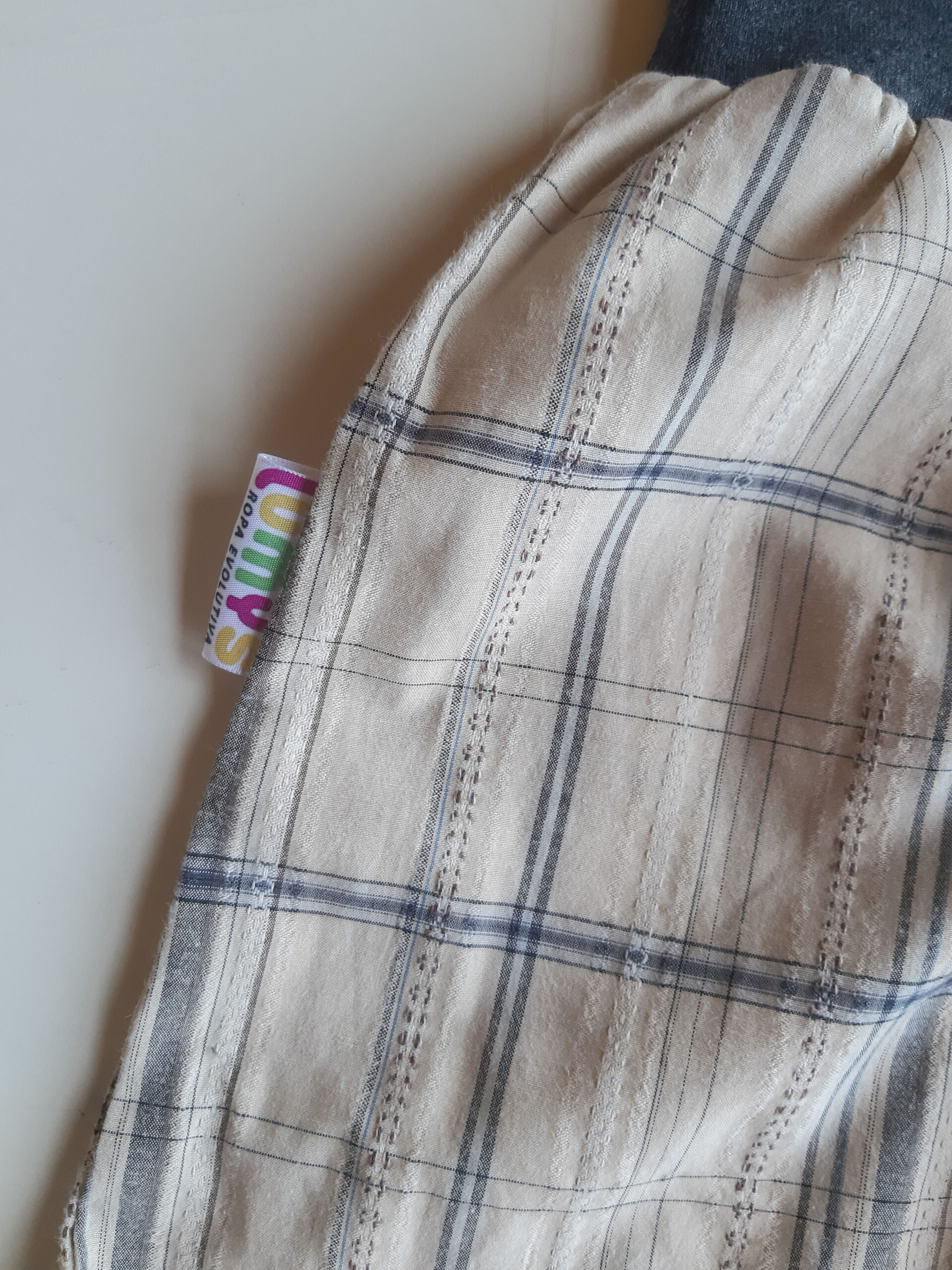 Pantalón evolutivo de diseño único hecho a partir de la re-utilización de una prenda en desuso en perfectas condiciones.