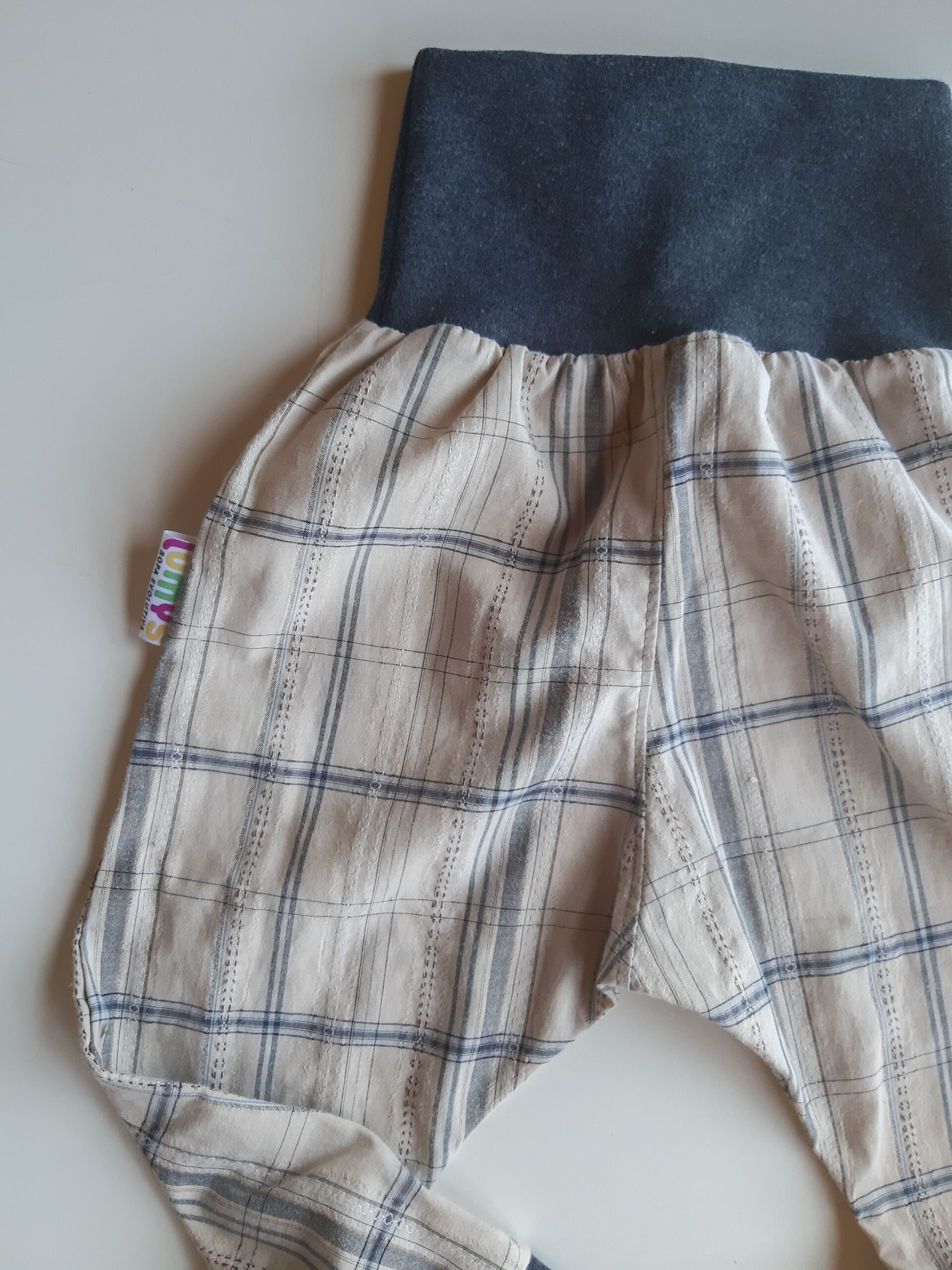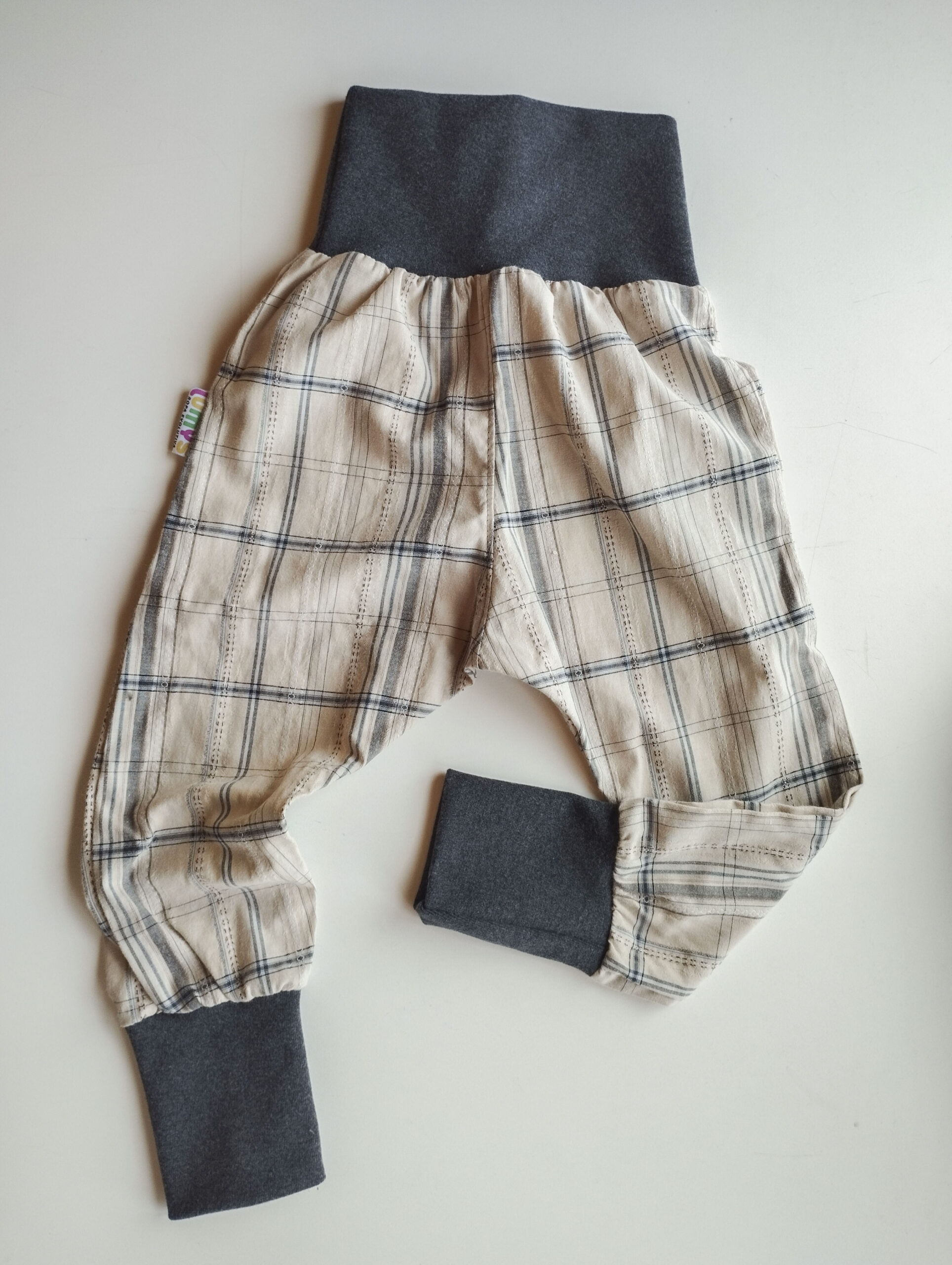 No tienen elástico, sólo puños que ajustan y no aprietan, sino todo lo contrario contienen amorosamente su pancita. Éstos mismos puños permiten que el pantalón sea evolutivo doblando y desdoblando a medida que crece tu bebé.