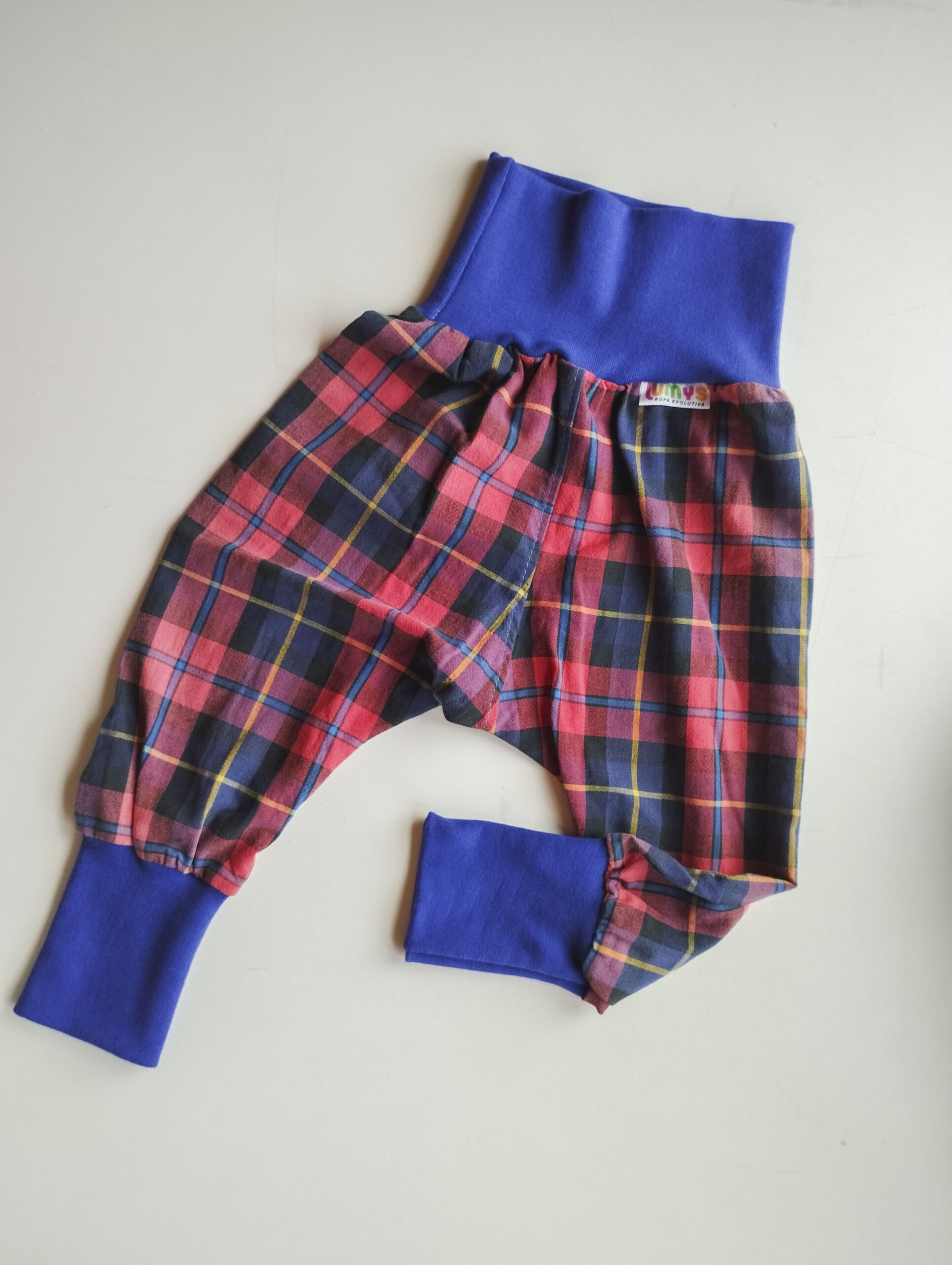 No tienen elástico, sólo puños que ajustan y no aprietan, sino todo lo contrario contienen amorosamente su pancita. Éstos mismos puños permiten que el pantalón sea evolutivo doblando y desdoblando a medida que crece tu bebé.