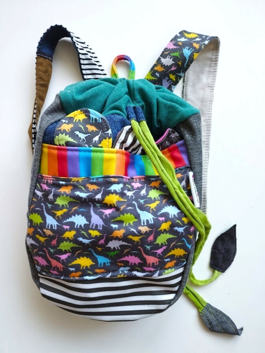 Cada mochila cuenta su propia historia, cosida con amor y con descartes textiles que tienen una segunda oportunidad desde mi taller ¡Texturas y estampas que les dan vida de manera única!