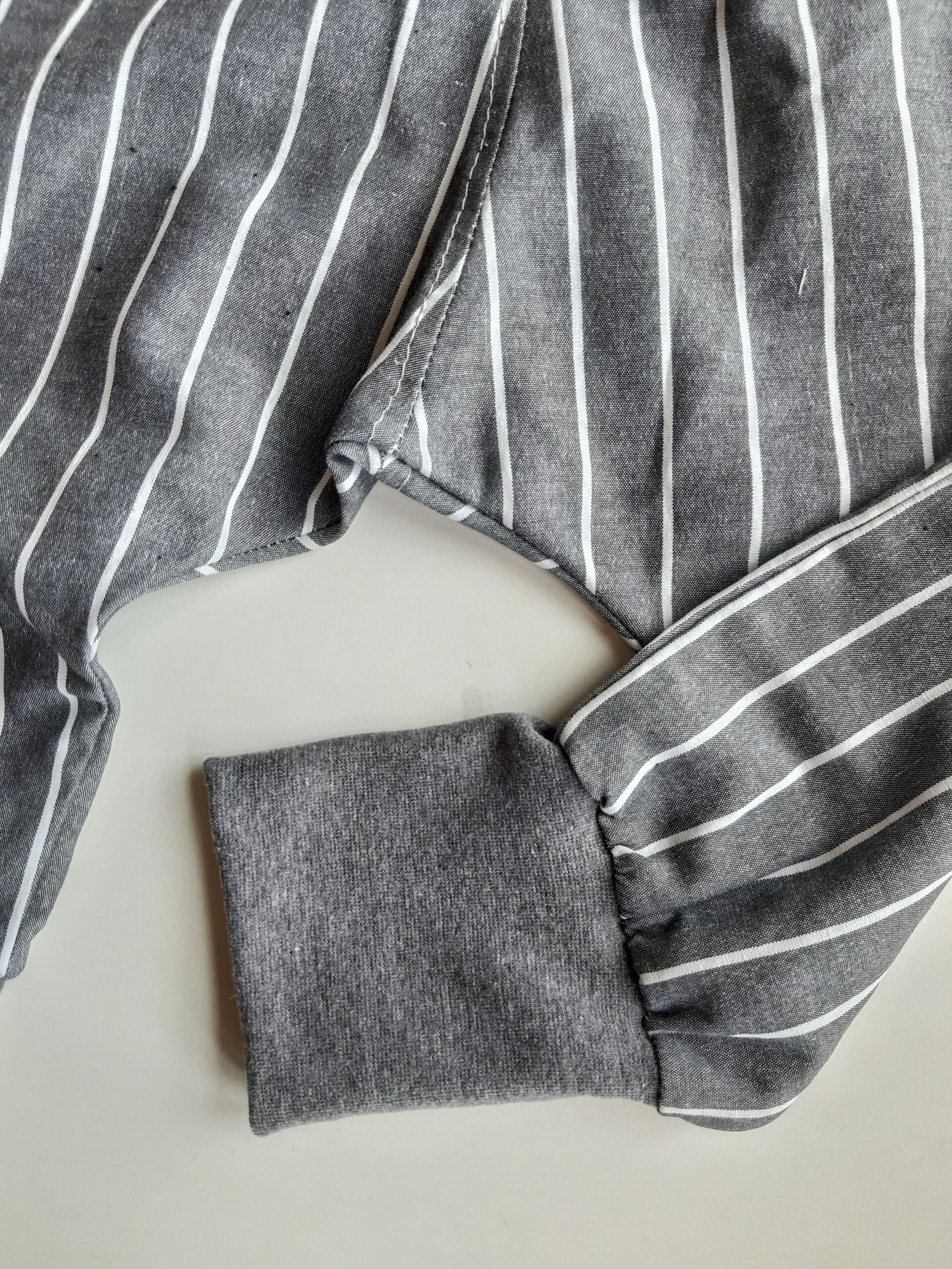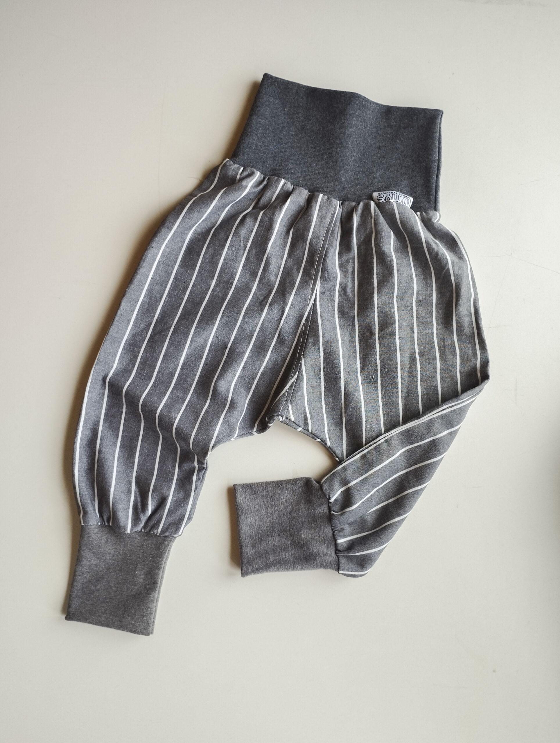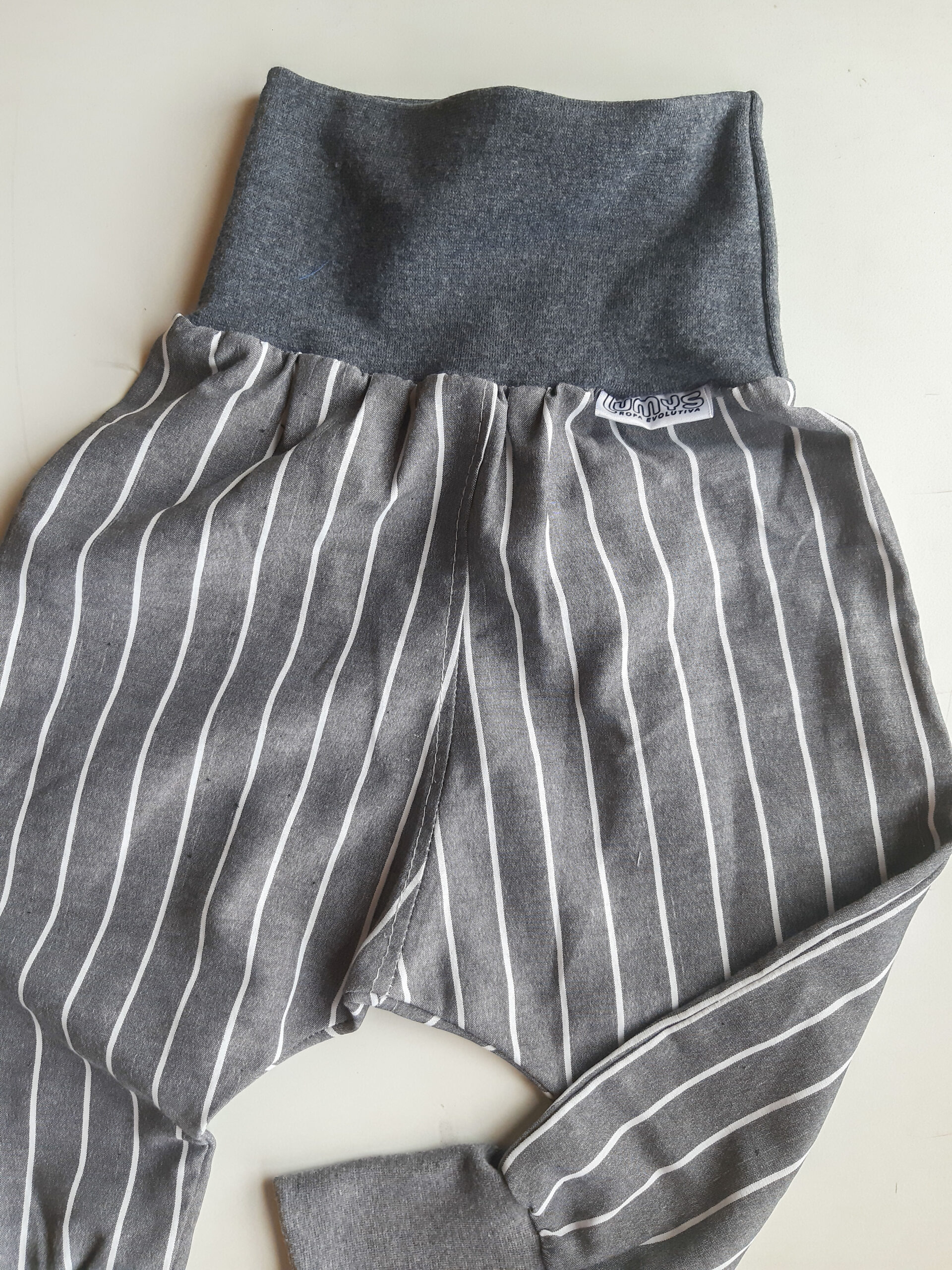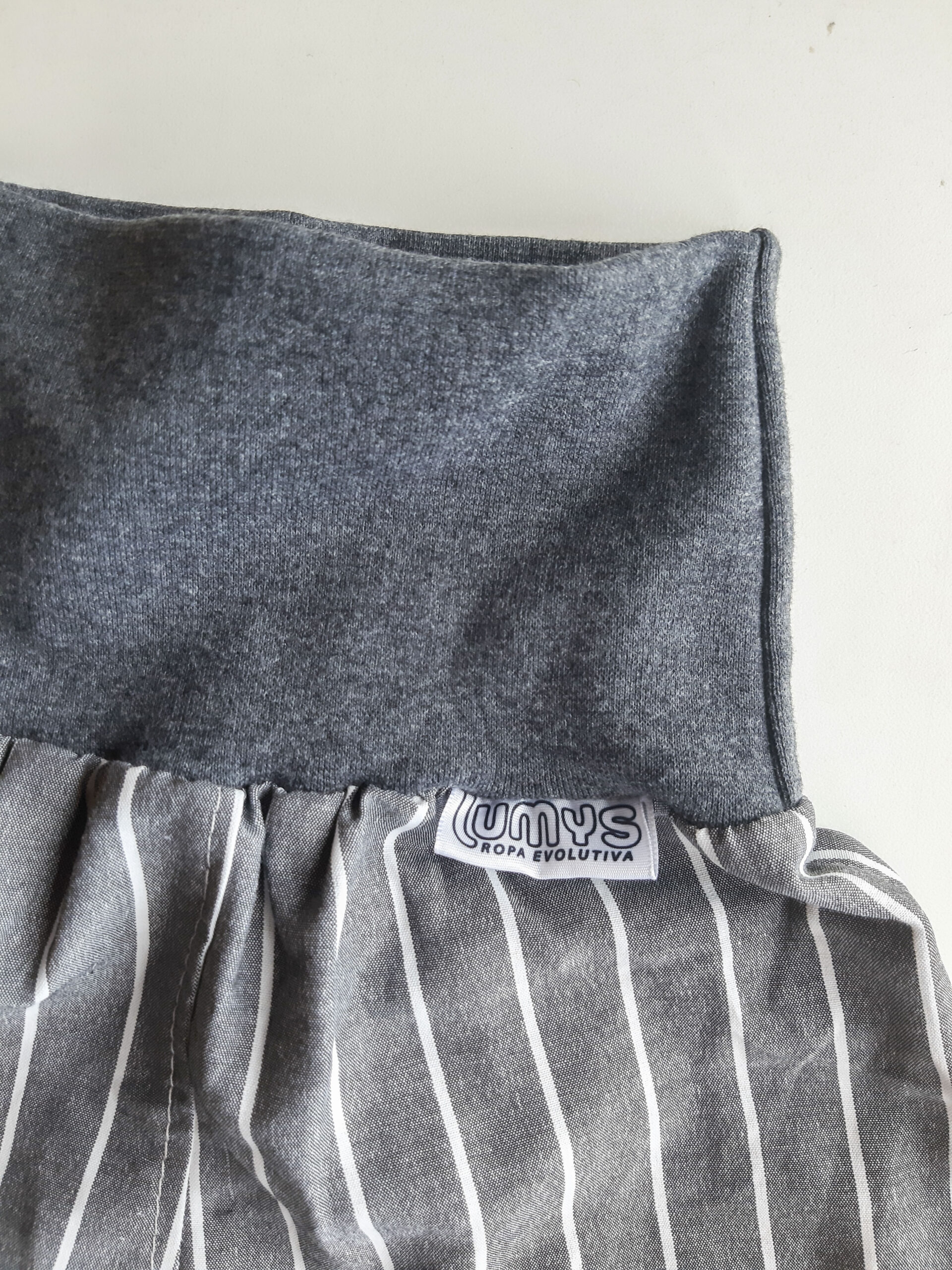 No tienen elástico, sólo puños que ajustan y no aprietan, sino todo lo contrario contienen amorosamente su pancita. Éstos mismos puños permiten que el pantalón sea evolutivo doblando y desdoblando a medida que crece tu bebé.