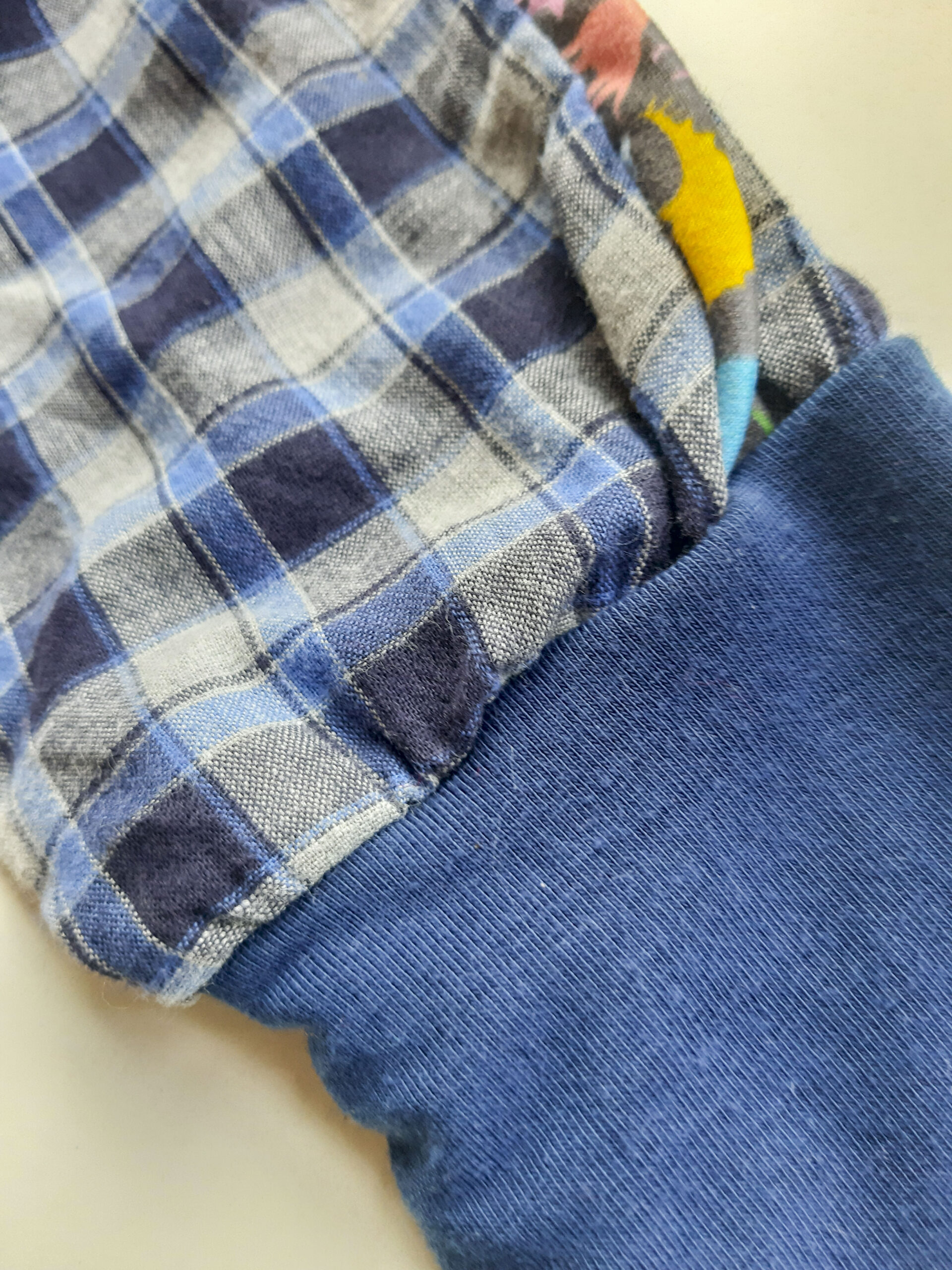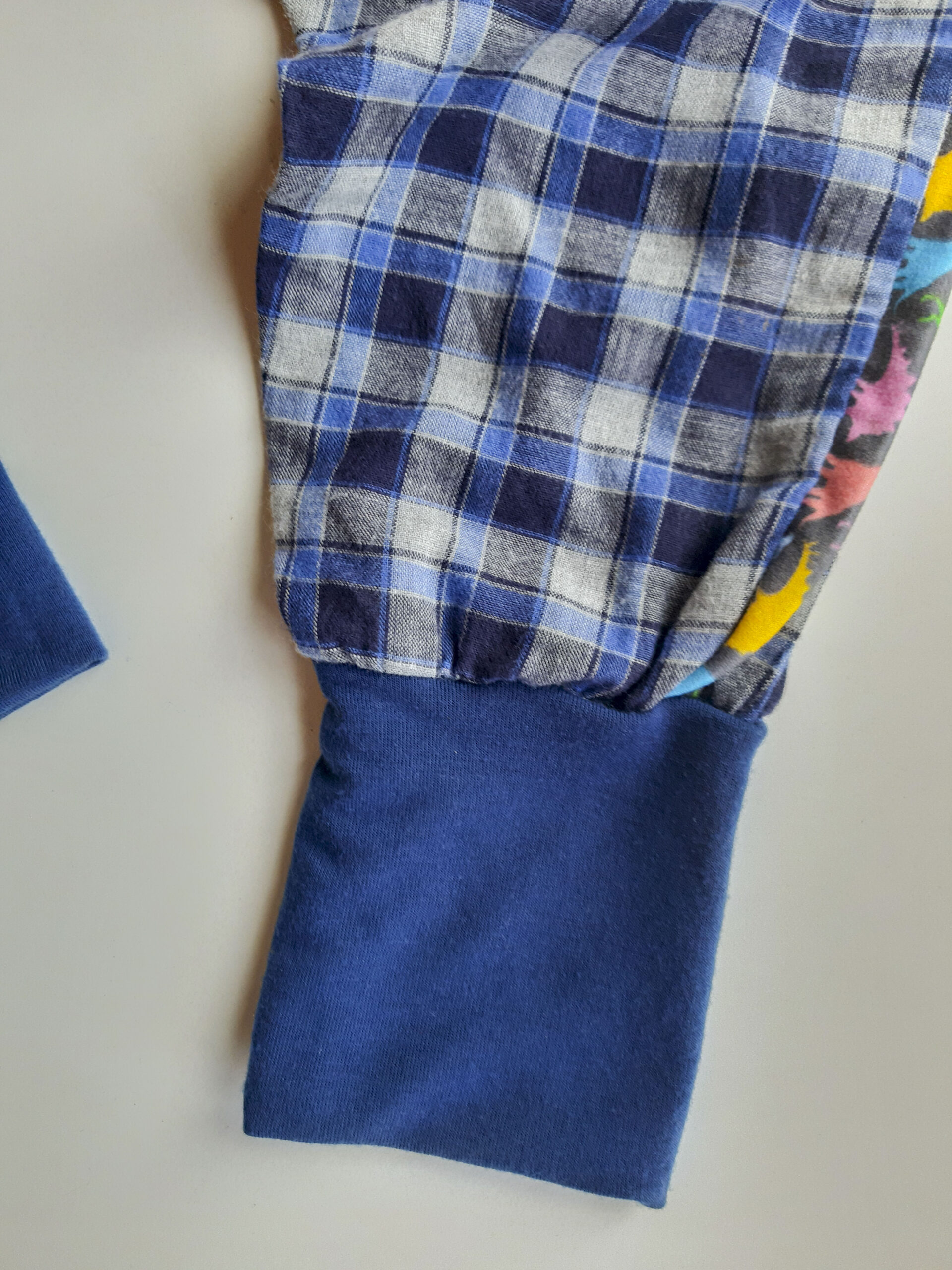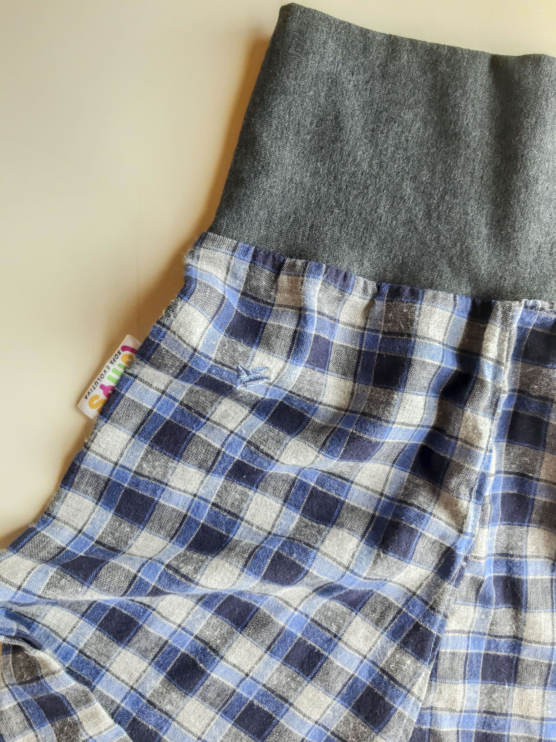 Pantalón evolutivo de diseño único hecho a partir de la re-utilización de una prenda en desuso en perfectas condiciones.