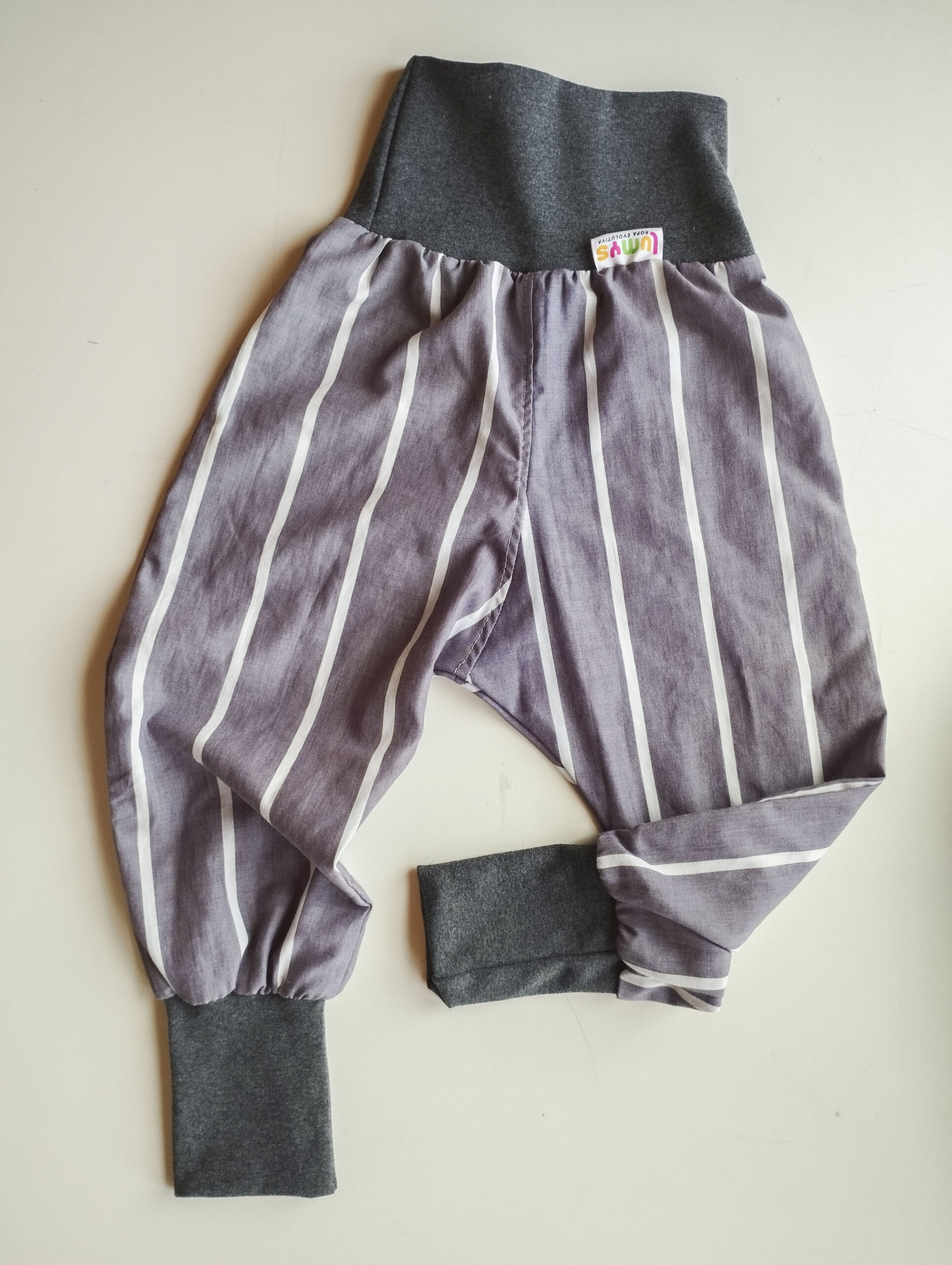 No tienen elástico, sólo puños que ajustan y no aprietan, sino todo lo contrario contienen amorosamente su pancita. Éstos mismos puños permiten que el pantalón sea evolutivo doblando y desdoblando a medida que crece tu bebé.