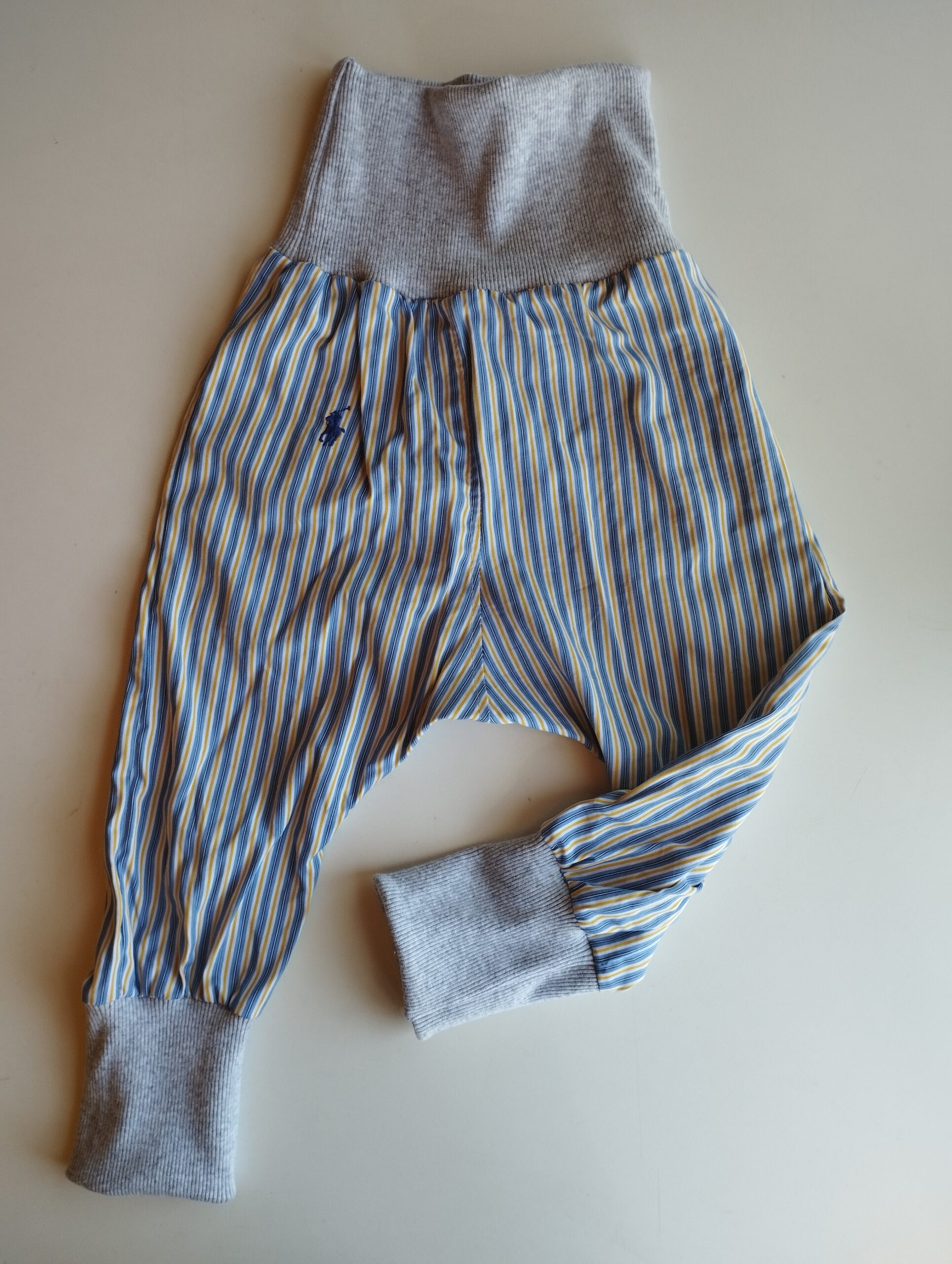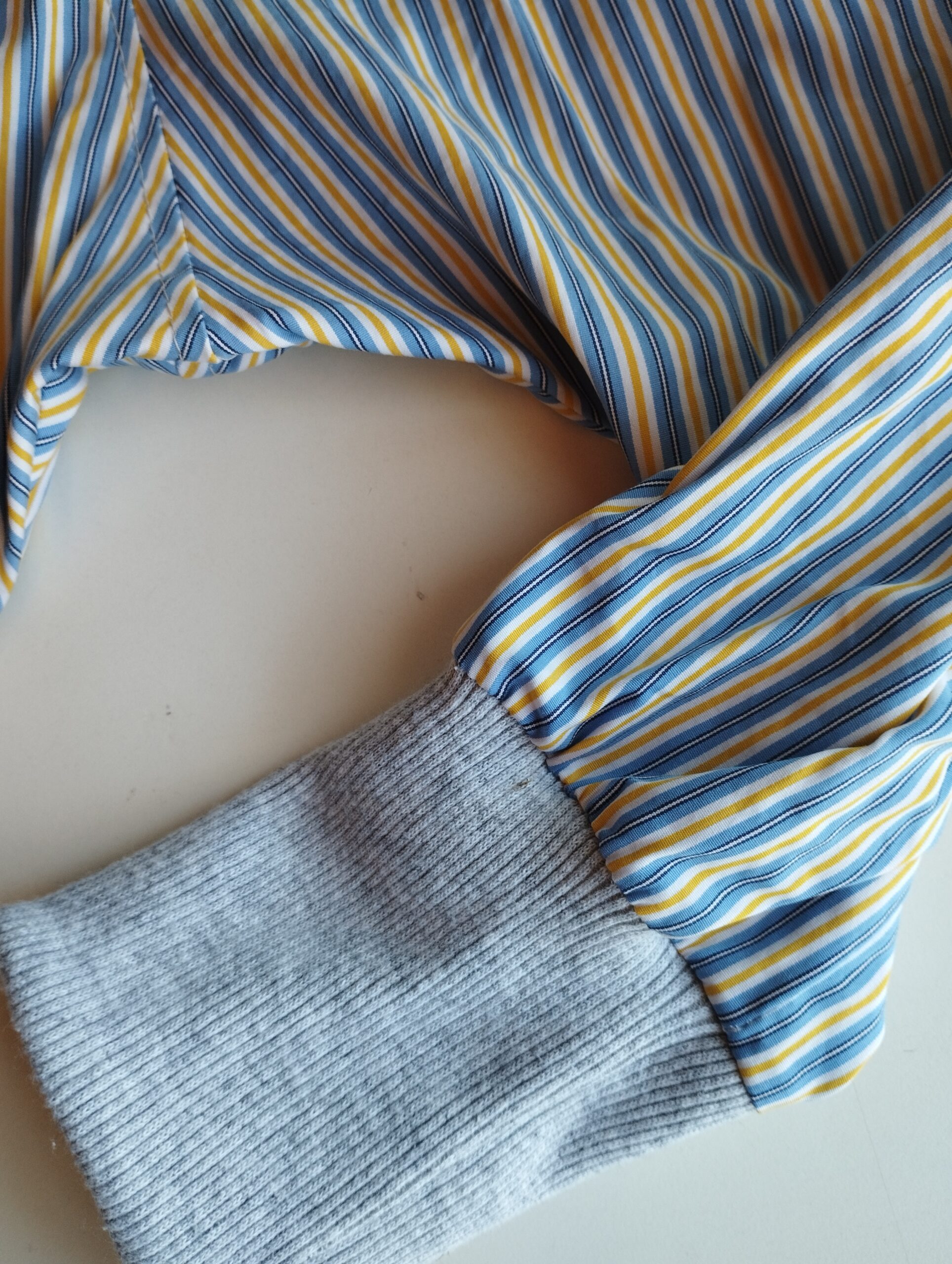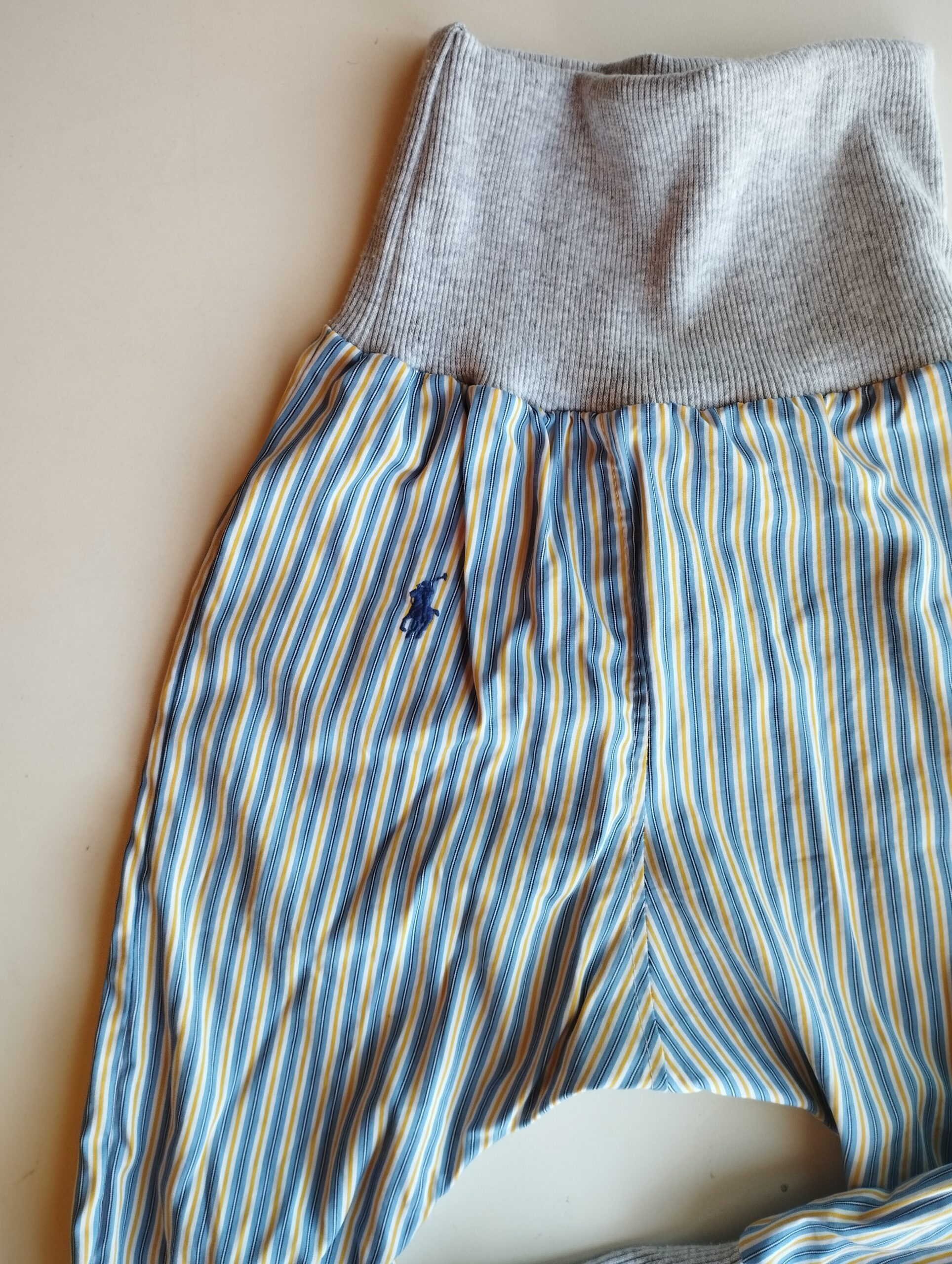 Pantalón evolutivo de diseño único hecho a partir de la re-utilización de una prenda en desuso en perfectas condiciones.